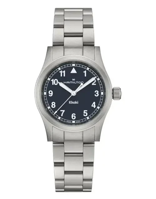 Primed for adventure, the Hamilton Khaki Field Quartz is a reliable and rugged companion ready for exploration. Taking inspiration from Hamilton’s reputation for precision, innovation and utility-focused design, the Hamilton Khaki Field Quartz pairs a classic 33mm navy blue dial with a modern metal bracelet.